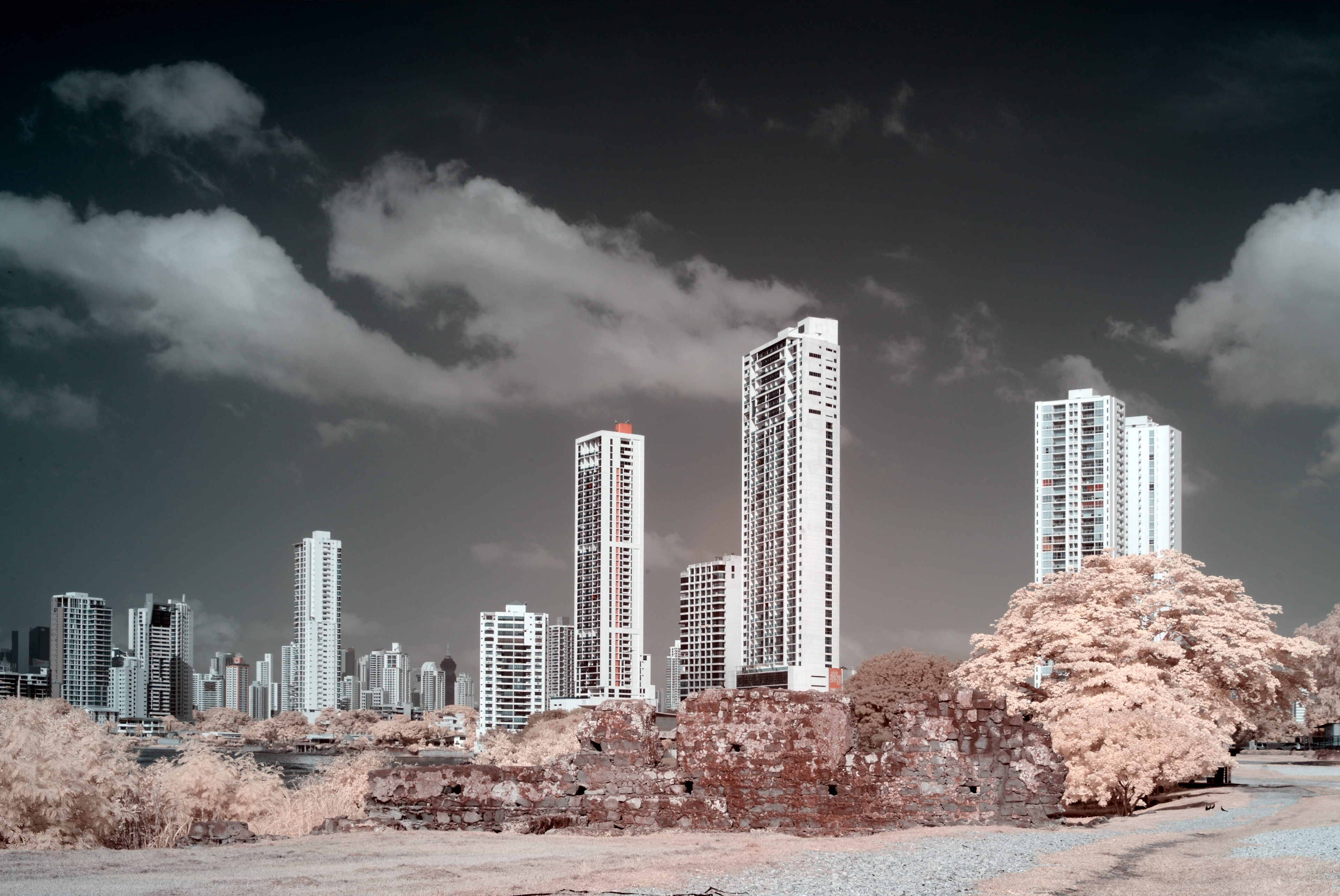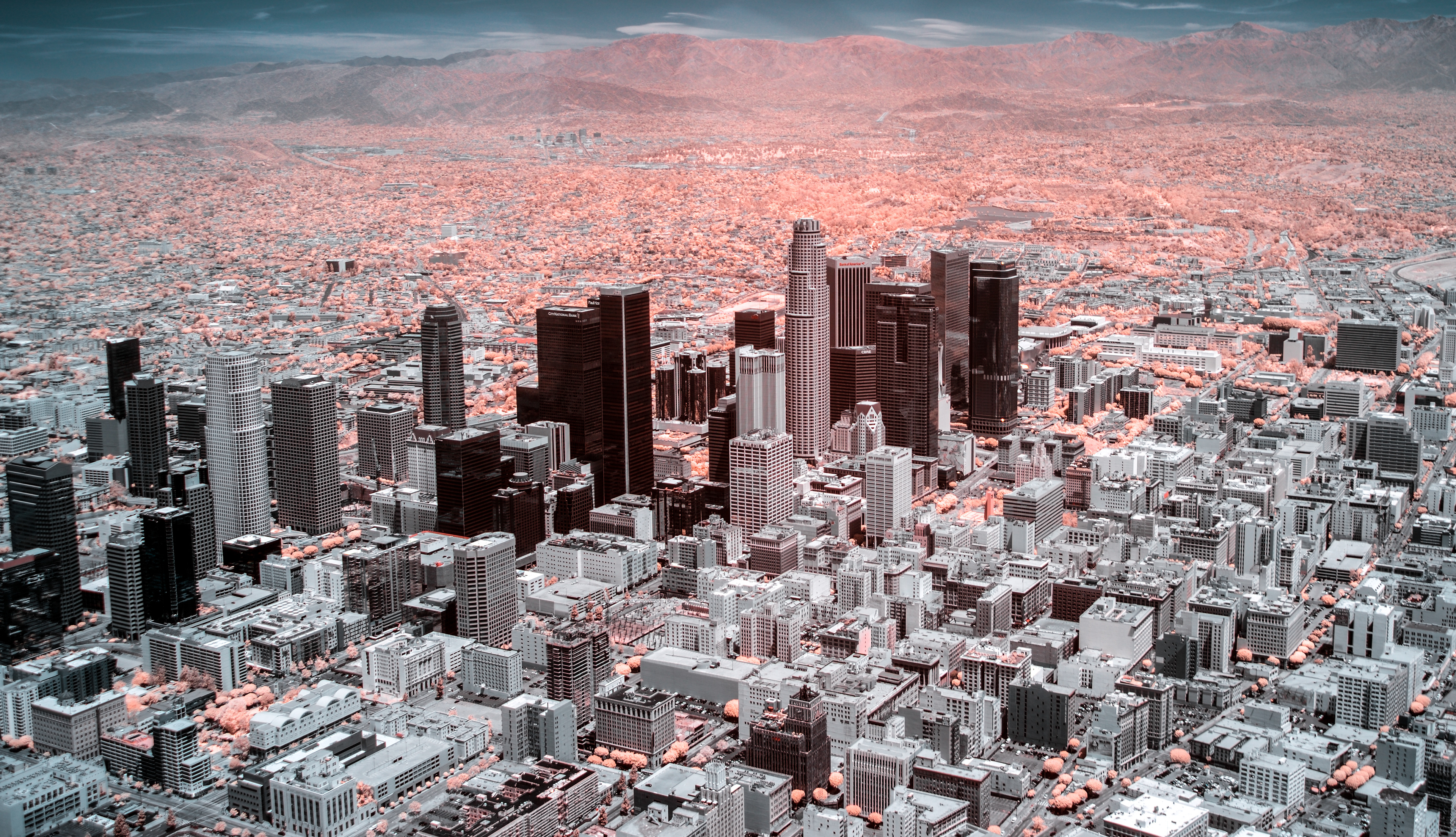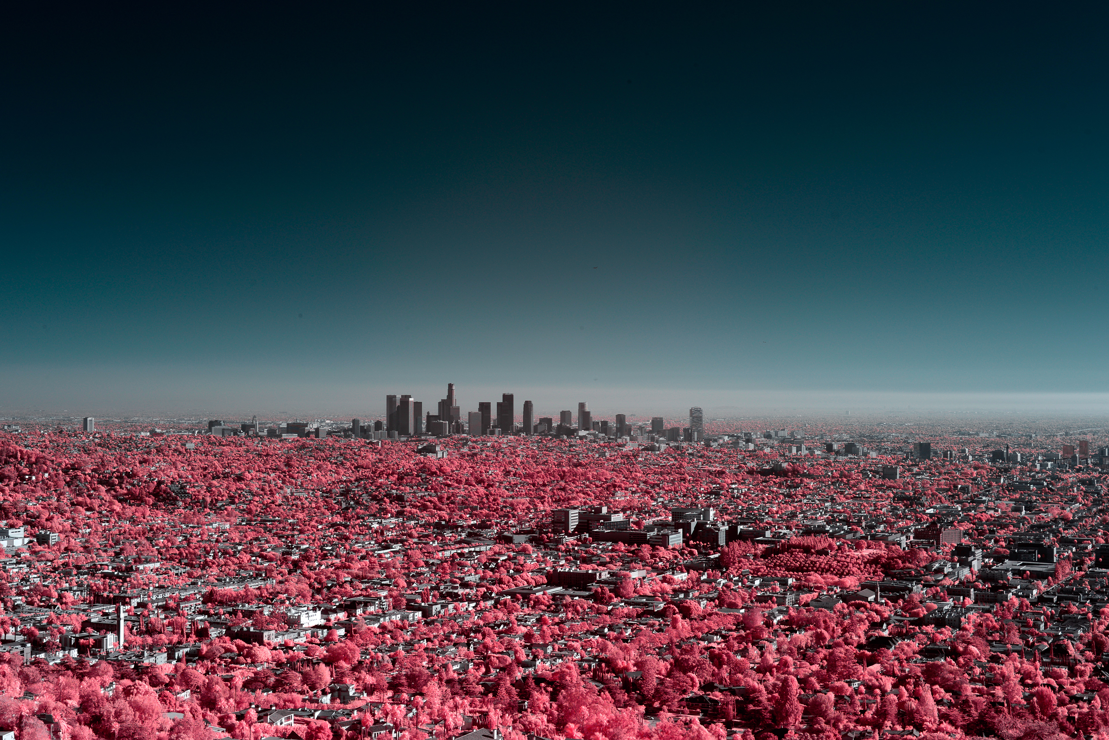 A photo study using infrared equipment to capture non-visible light waves in an urban context.