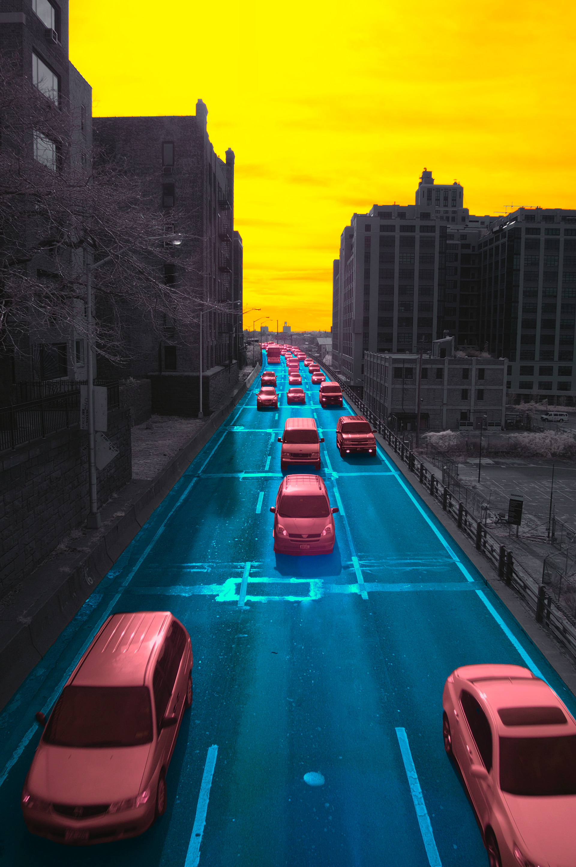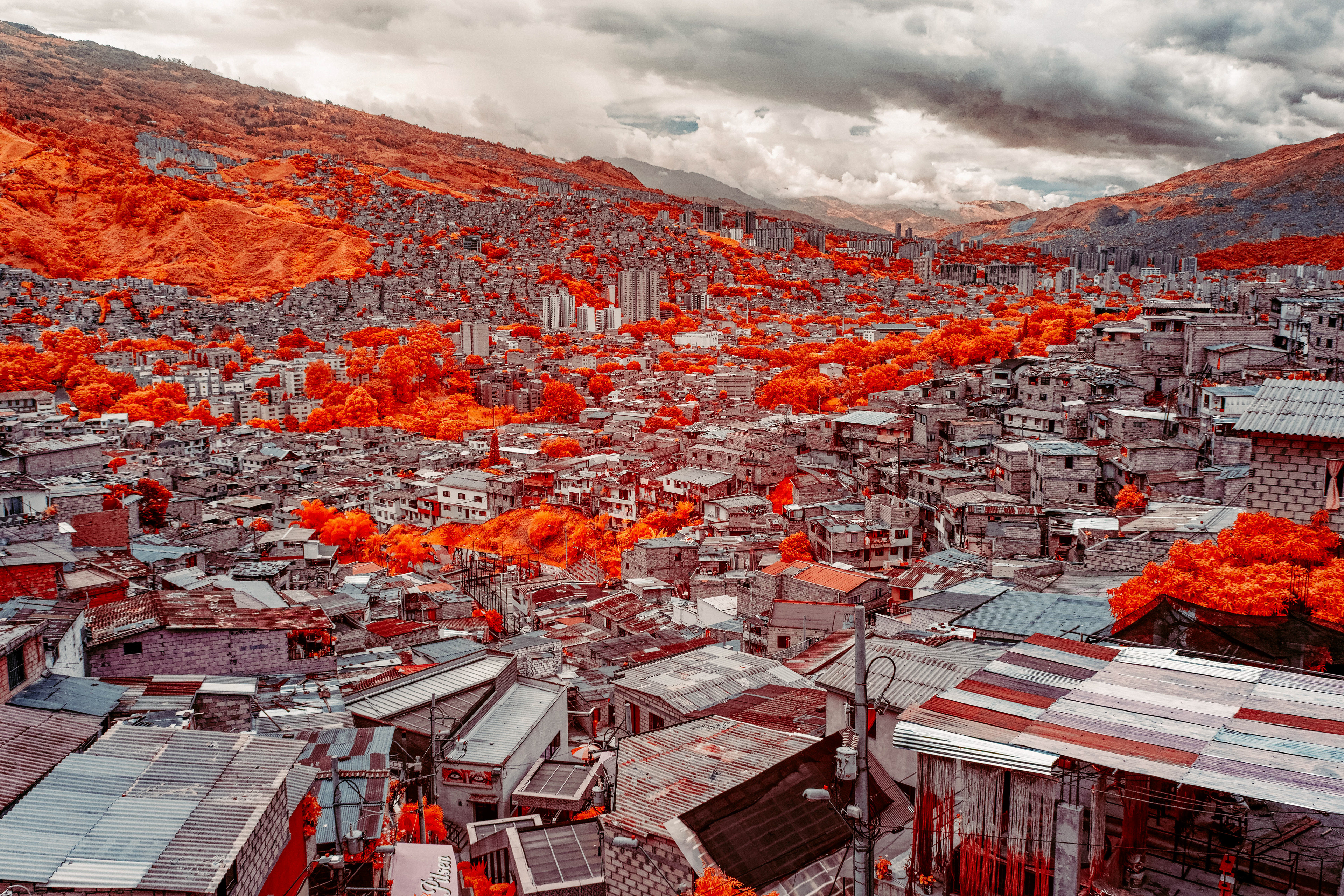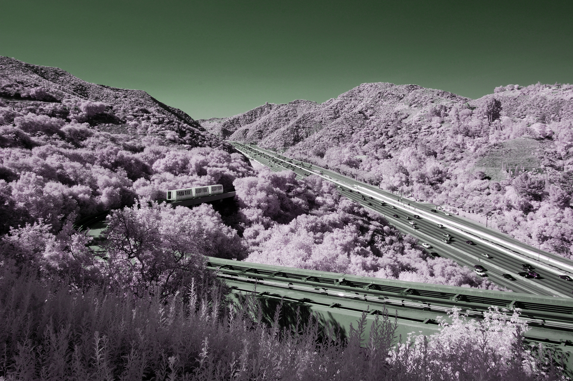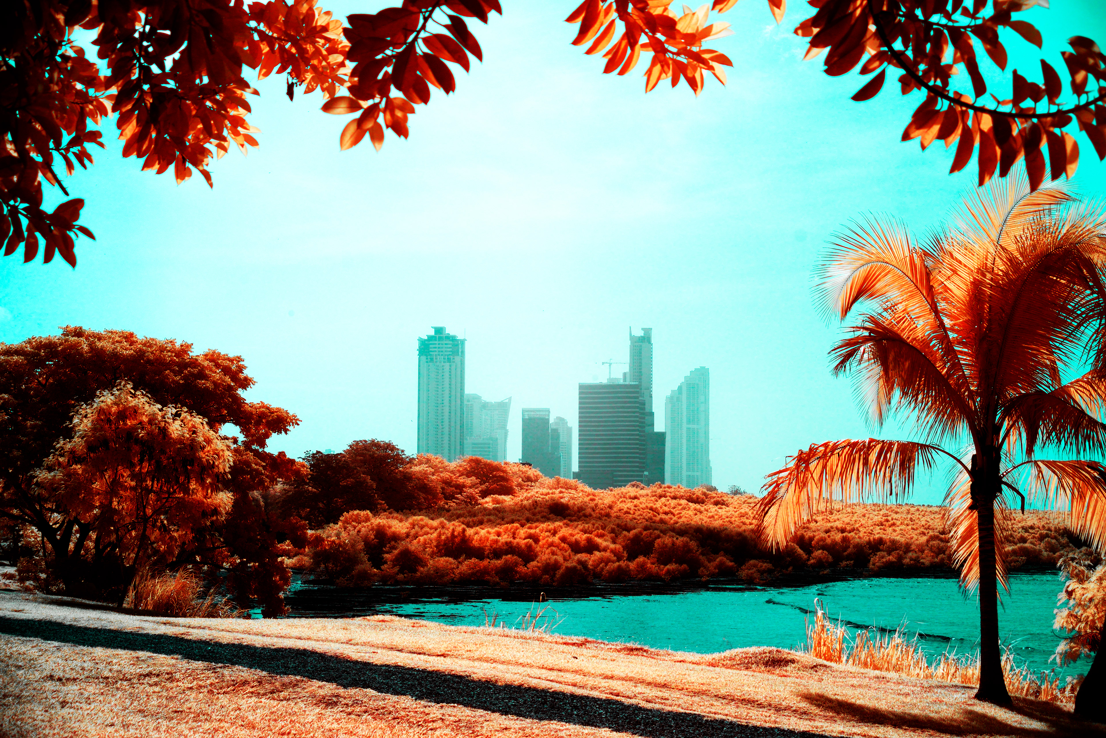 A photo study using infrared equipment to capture non-visible light waves in an urban context.